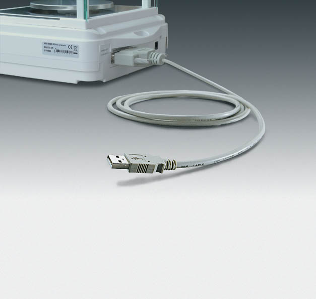 - RS-232C bidirectional interface port; optional Sartorius cable for connection of the balance to a USB